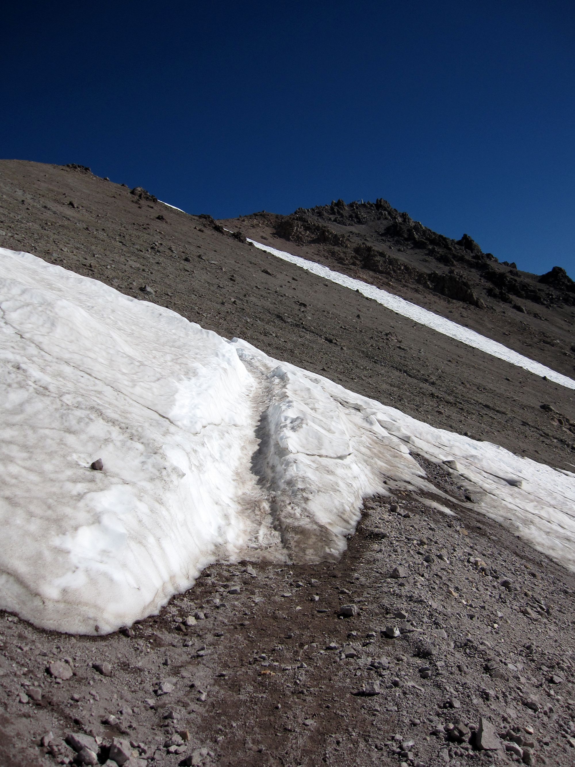 Views looking up (left) and down (right) the trail to the top of Lassen Peak.