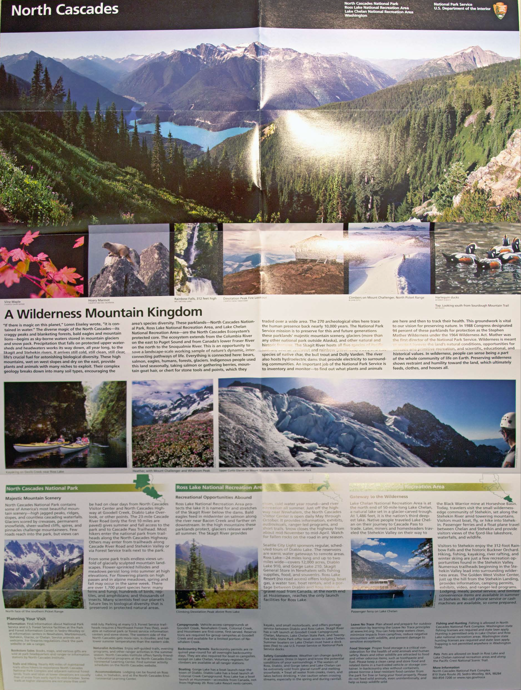 So two summers ago I had the privilege of working as a staff photographer in North Cascades National Park and they recently redid the park map to highlight some of the new photography myself and others have contributed to the park's library in recent years. Two of my photos made the final cut, one panoramic photo looking off of the trail near the top of Sourdough Mountain and one featuring a friendly little critter known as the hoary marmot. A scanned copy of the map is below as well as the original photos. After visiting so many of the national parks on the west coast, it means a great deal to me to give something back. Enjoy!