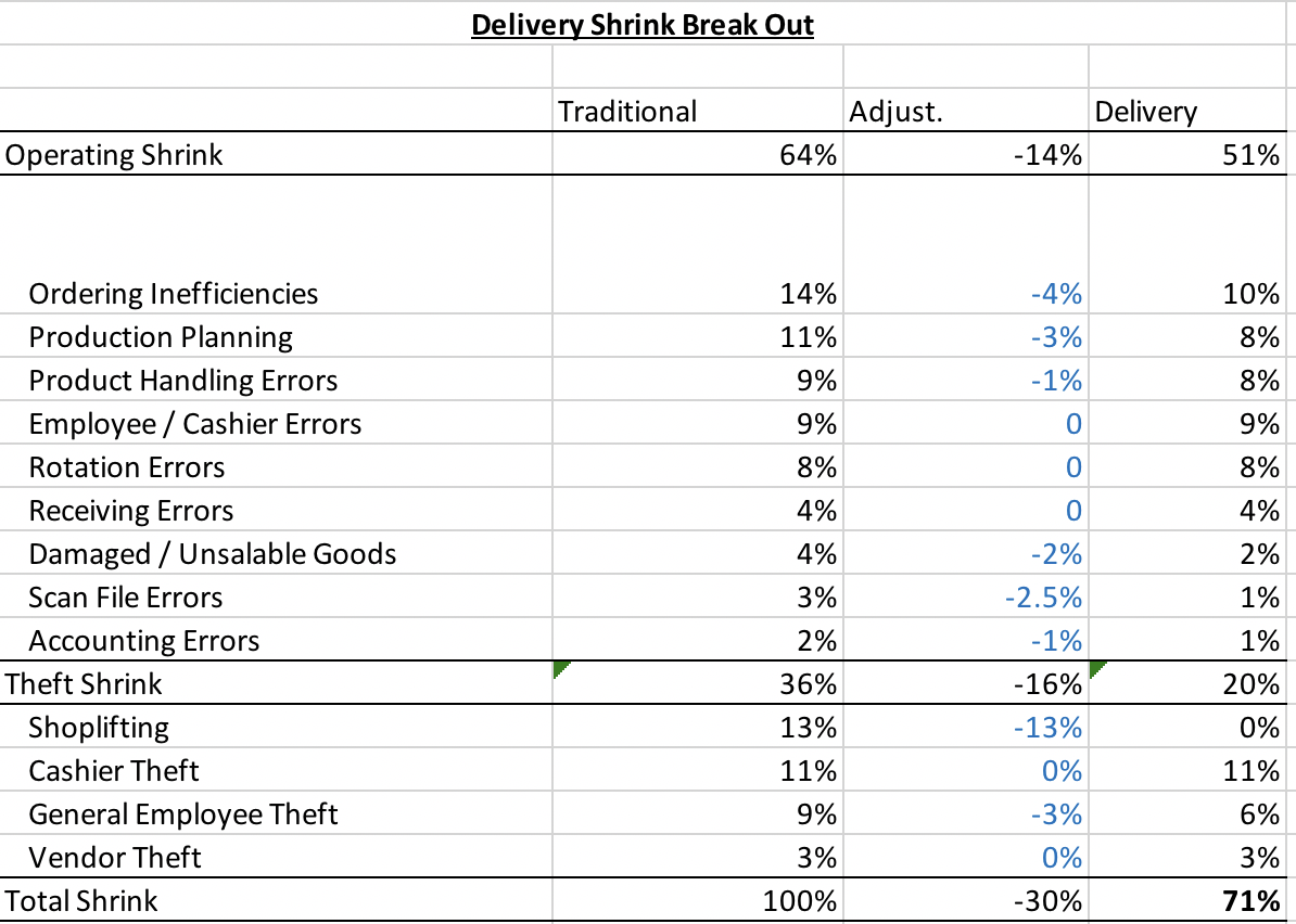 Some small reductions based on delivery could potentially reduce shrink by 30%!